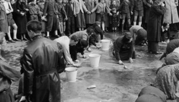 Венских евреев заставляют мыть улицы после аншлюса Австрии, 1938..