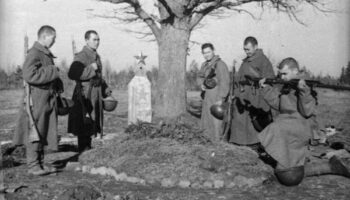 Советские солдаты на могиле боевого товарища на Западном..