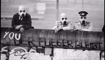 Восточногерманские пограничники наблюдают за разгоном..