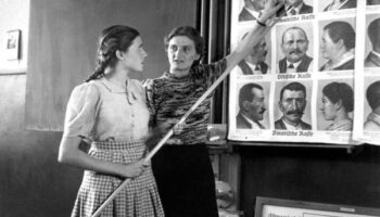 Школьницa на занятии по расовой чистоте, Германия, 1940 год.