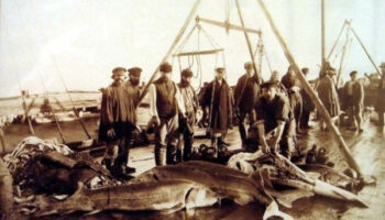 Взвешивание и первичная разделка осетровых. Астрахань конец 19..