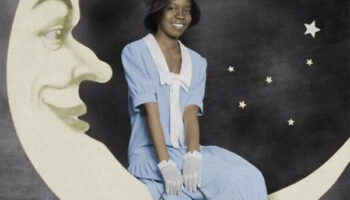 Винтажные фотографии людей на картонном полумесяце. Больше..