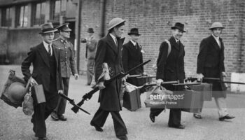 Призванные на военные сборы англичане идут в казармы. Англия,..