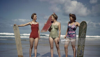 Молодые женщины позируют на пляже. середина ХХ века. Больше..