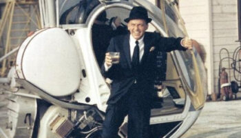 Фрэнк Синатра выходит из собственного вертолета, Голливуд, США,..