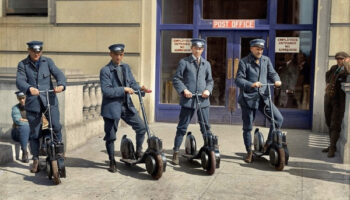 Вашингтонские почтальоны демонстрируют свои новые скутеры..