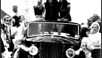 Марк Болан в «Роллс–Ройсе» в окружении поклонниц, Лондон, 1972..