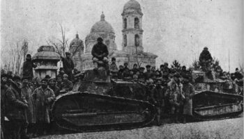 Renault FT с французскими танкистами, местными жителями и..