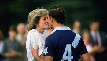 Принц Чарльз целует принцессу Диану в день рождения супруги. 1985..