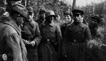 Солдаты 173–й воздушно–десантной бригады держат флаг Партии..