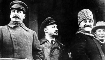Сталин, Бухарин, Орджоникидзе и Рудзутак. Москва,1929..