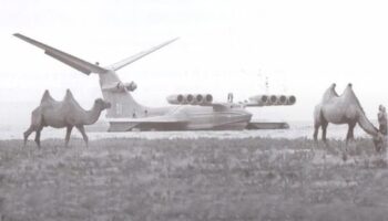 Экраноплан « КМ » на испытаниях в районе Каспийского моря…