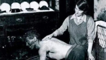 Жена моет своего мужа-шахтëра после смены. Уэльс, 1931..