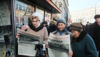 Москвичи на площади Дзержинского изучают свежую прессу, 1976..