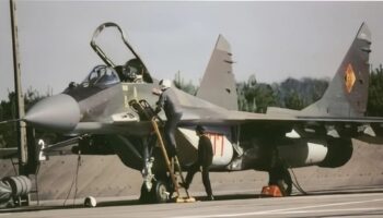 Экипаж самолёта МиГ-29 Люфтштрайткрефте ГДР готовится к полёту,..