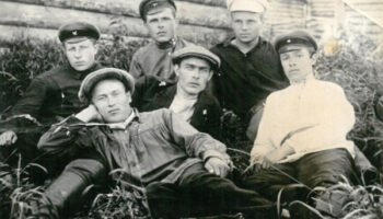 23-летний землеустроитель Леонид Брежнев (в центре) с..
