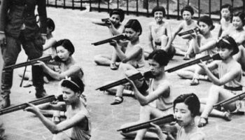 Японские девочки обучаются стрельбе в школе, 1930-е..