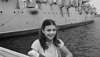 Американская школьница Саманта Смит с сувениром, подаренным ей..