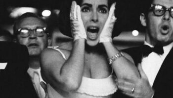 Элизабет Тейлор наблюдает за боксерским матчем. США, 1960..