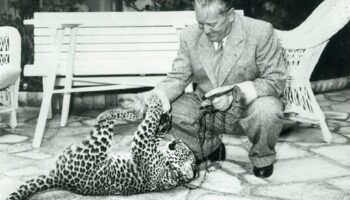 Лидер Югославии Иосип Броз Тито играет с домашним леопардом в 1956..