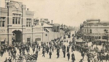 Много людей и конные экипажи у ворот Королевского арсенала -..