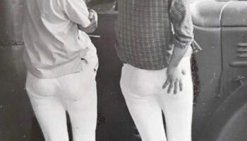 «1962 год. Двое красавцев-мужчин в белых лосинах — это мой папа и..