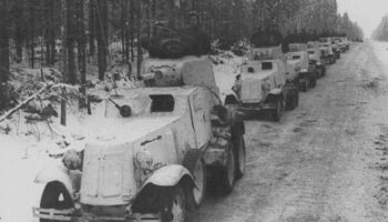 Бронеавтомобили БА-10 брони дивизиона РККА на марше после..