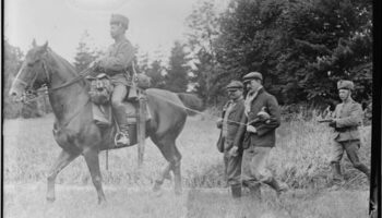 Немецкие гусары конвоируют двух местных партизан.Бельгия ,1914..