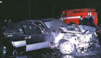 Кортеж президента Грузии Эдуарда Шеварднадзе после атаки..
