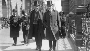 Джон Д. Рокфеллер-старший и младший на прогулке по Нью-Йорку (1924..