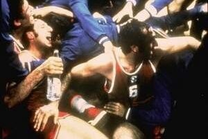 Мужская сборная СССР по баскетболу в эйфории от победы над..