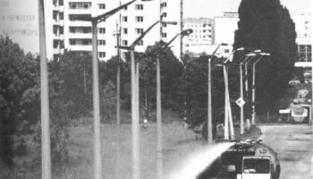БелАЗ принимает участие в дезактивации города Припять.СССР, 1986..