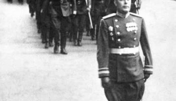 Генерал-майор Леонид Брежнев на первом Параде Победы в Москве, 1945..