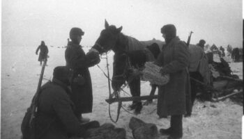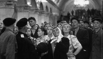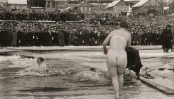Крещенское купание в Саратове. Верующие ныряют в прорубь,1949..