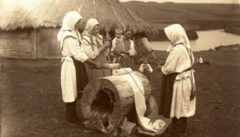 Крестьянки за лощением холста .Чувашская АССР ,1928..