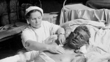 Ординатор эвакогоспиталя № 1117 Е.Н. Сулимова ухаживает за..