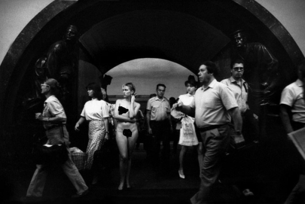 Фотография 1991 года. Обнаженная девушка, стоящая на платформе станции «Площадь Революции». Эта фотография появилась не где–нибудь, а в «Огоньке», который в те годы был одним из самых тиражных изданий. Целью фотосессии было поймать реакцию пассажиров, но… «Я ожидал от людей совершенно другой реакции. Я думал, они будут останавливаться, глазеть, я сам именно так бы и поступил, а они ускоряли шаг. Для снимка это оказалось даже лучше».
